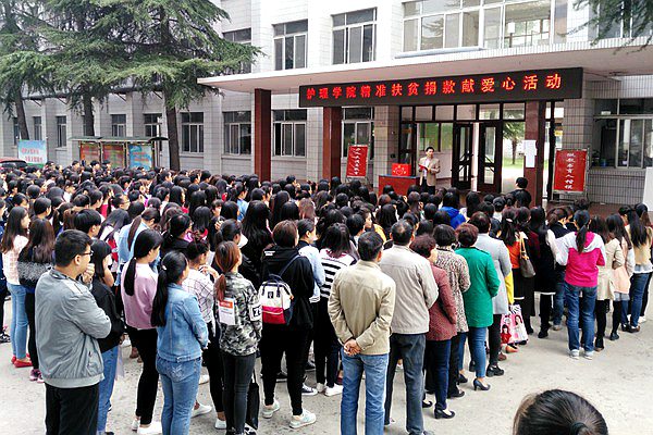 10月13日下午,为积极响应今年会“为栾川县扶贫定点村捐款献爱心”的倡议,护理学院师生代表齐聚学校大门前广场,举行扶贫日捐款现爱心活动。