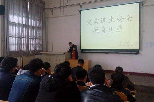 为了增强全体学生的火灾逃生安全意识,2017年3月1日中午,护理学院红山校区学生会万军凯老师在阶梯教室为护理学院学生进行安全知识培训讲座。