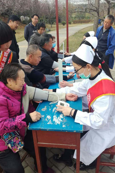 3月16日下午,护理学院团总支组织志愿者到洛阳市机场路航空港牡丹园进行学雷锋爱心义诊活动。