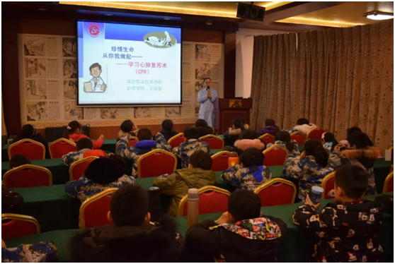 1月19日,应洛阳晚报教育周刊邀请,护理学院王瑞丽老师参加了该报举办的智慧少年冬令营活动,现场为小学员进行心肺复苏知识培训。来自洛阳市中小学的80余名学生参加了培训。