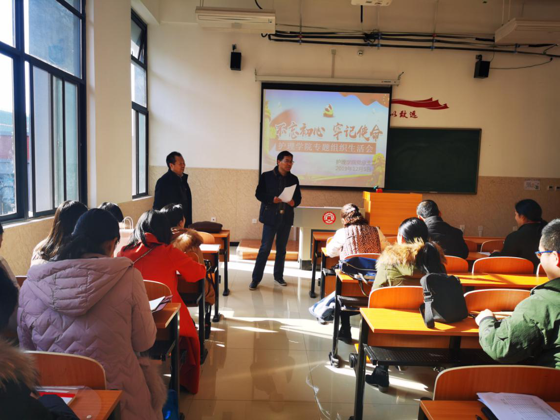 2019年12月5日下午,护理学院党总支在伊滨校区3号教学楼209召开组织生活会。党委委员韩洪涛同志出席并指导了本次的组织生活会,护理学院党总支书记张志友同志主持了本次会议。