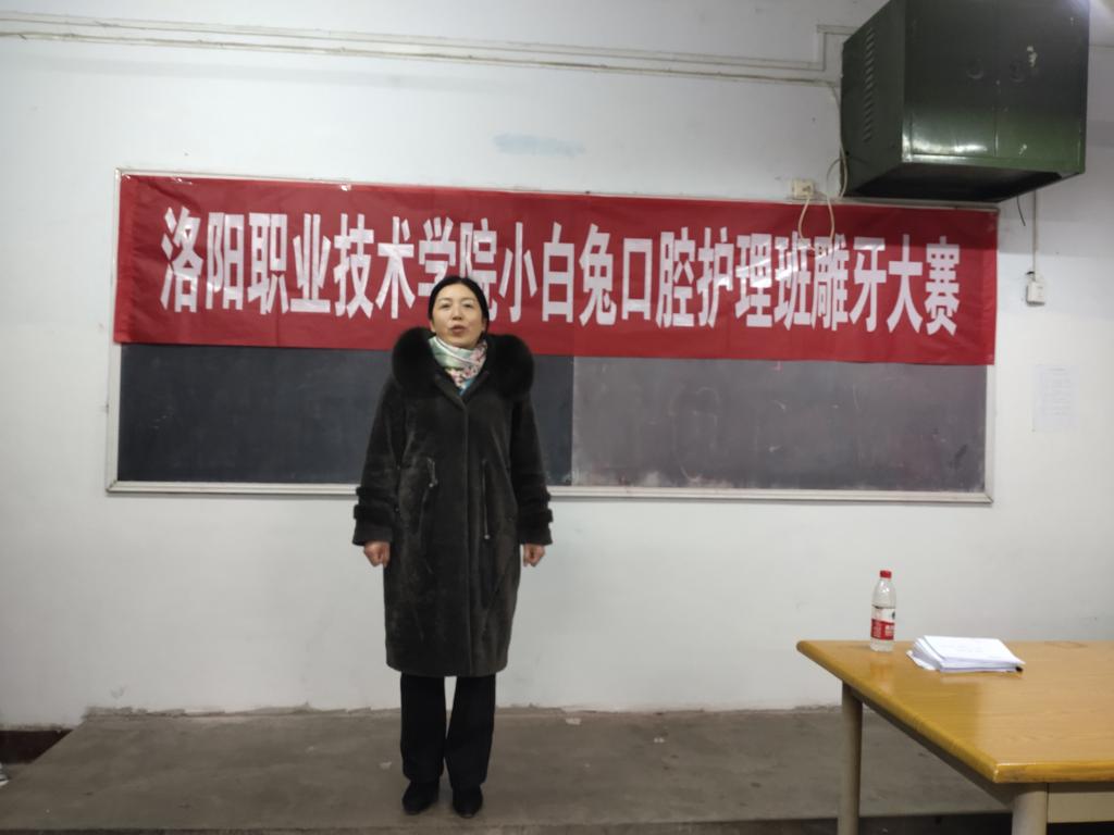 为丰富校园文化生活,促进同学之间学习经验交流,打响护理学院专业特色品牌,加强学科交叉与专业的交流,提升口腔护理班技能水平,给学生一个展现自我的机会,增强同学们的学习热情,今年会于12月19日18:00在红山校区举行小白兔口腔护理班雕牙比赛,本次比赛特别邀请护理学院副院长尚艳芳、护理学院教学办主任景书坛、小白兔医院口腔管理有限公司总经理郭向红、段改平莅临本次比赛,口腔护理班共24名学生参加本次比赛。