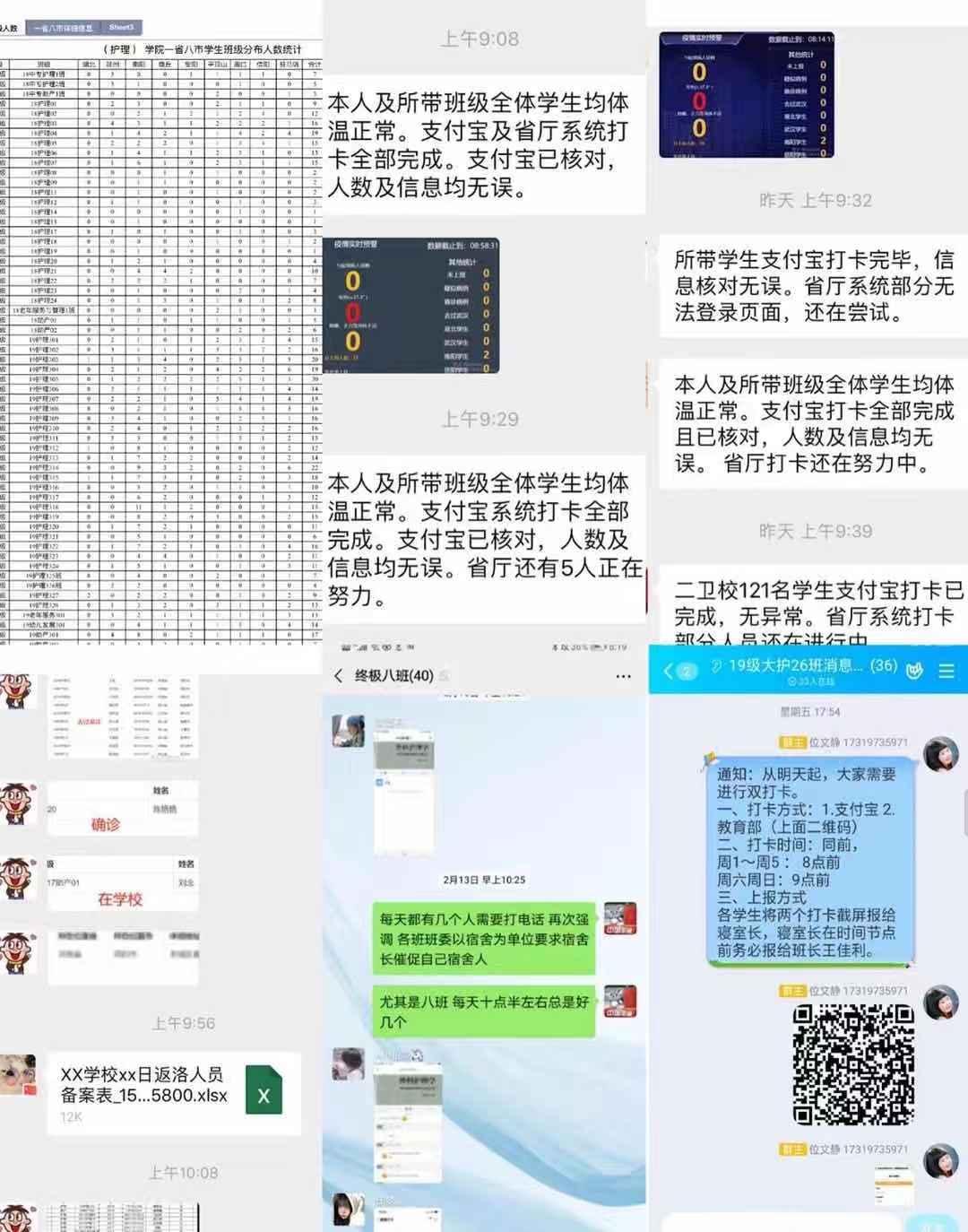 从全面排查,到建立重点监测人员信息库;从大数据筛查,到精准掌握学生健康动态。疫情面前,护理学院辅导员也是防疫信息员,隔离不隔心,休假不休息,他们24小时保持手机畅通,严格执行疫情“日报告”、“零报告”制度,持续绷紧防控疫情之弦。