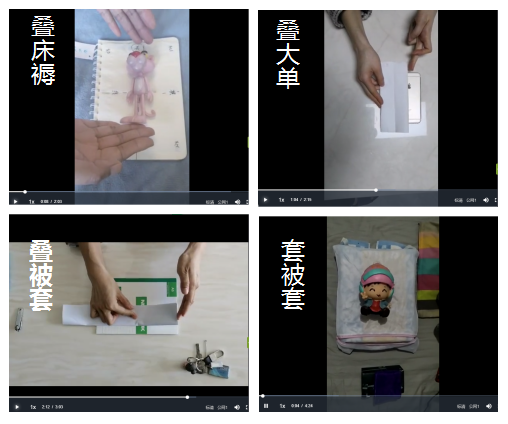 为最大程度地提高《基础护理学》实训课的在线教学效果,教研室主任刘书莲老师每周定期组织大家召开视频会议,进行集体备课,分享教学经验。刘书莲主任带领教研室其他老师充分利用家中现有资源(卡通玩偶、笔记本、抽纸、手机、短绒小毛巾、洗衣机纱网甩干袋等),将本是枯燥的铺备用床教学内容录制成一个个生动有趣、活灵活现、易于理解的教学微视频,课后学生反响很好。
