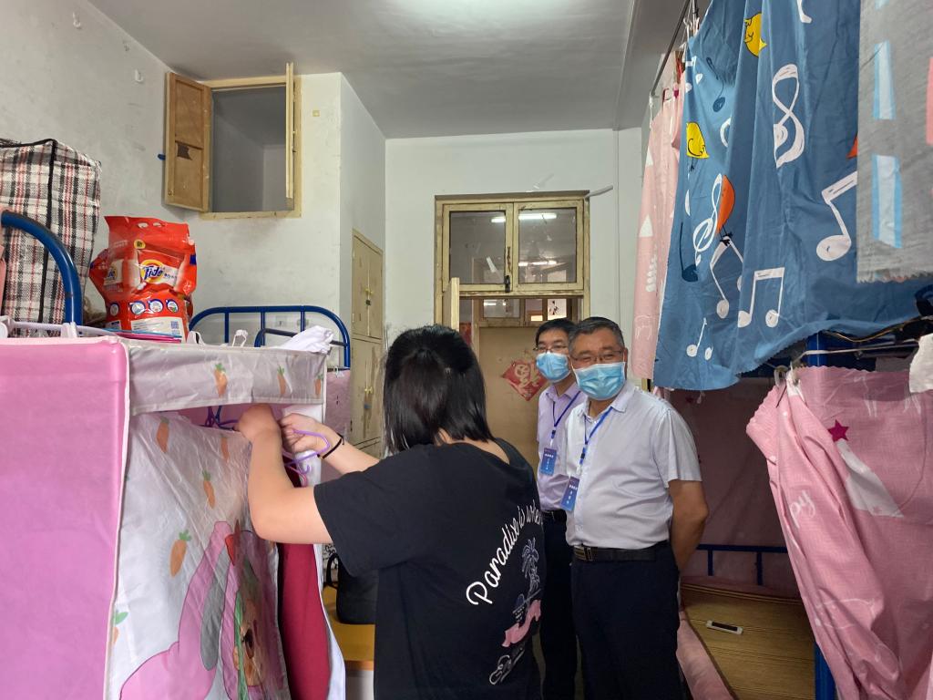 院领导韩洪涛、姚克敏与首批返校学生亲切交谈,了解学生的返校方式、返校路线及身体状况等,并叮嘱学生要注意自我防护,严格遵守学院疫情防控各项规定,按时完成学习任务。
