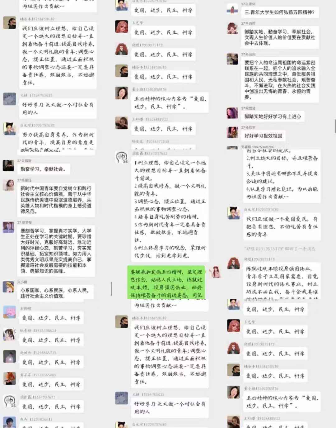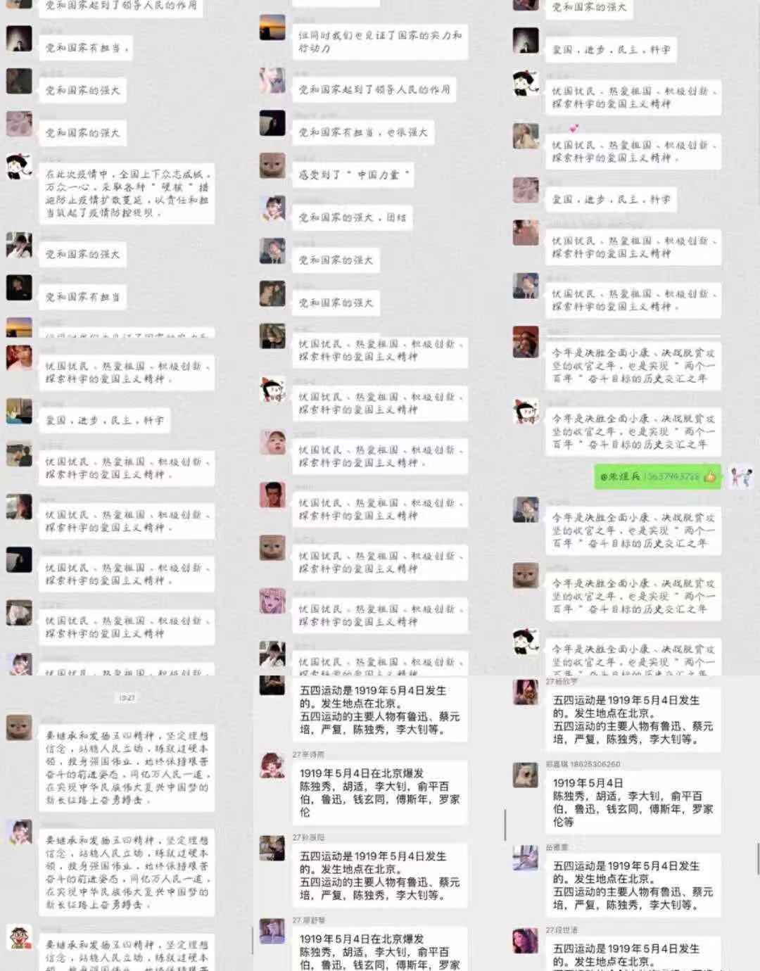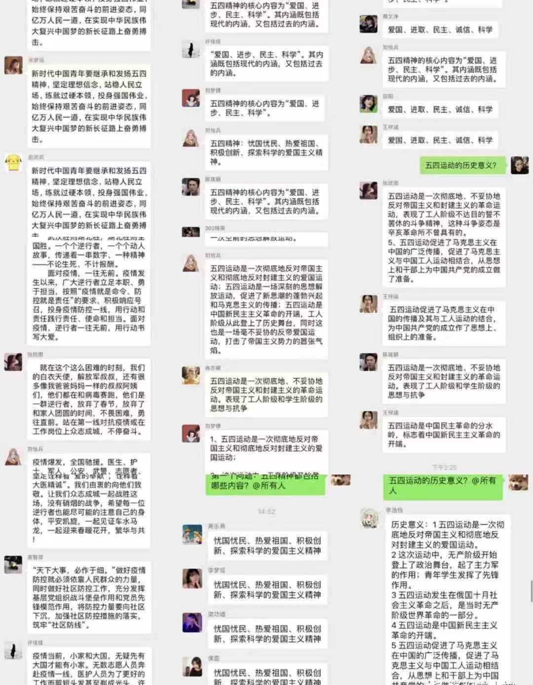 通过此次团课同学们已是感想纷纷,是啊,一代人有一代人的长征,一代人有一代人的担当。建成社会主义现代化强国,实现中华民族伟大复兴,是一场接力跑。现在五四的薪火传承到了我们手中,我们虽居家上课,但仍竞相接力。