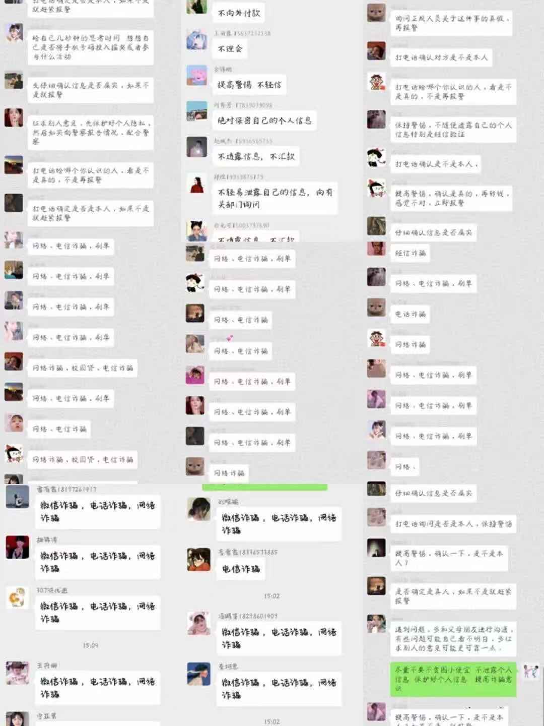 在6月4日下午护理学院开展了以“防诈骗”为主题的线上团课。由团支书组织开展,各班同学参与。本次团课主要内容包括“网络诈骗”,“谨防校园贷”和“其他诈骗”。