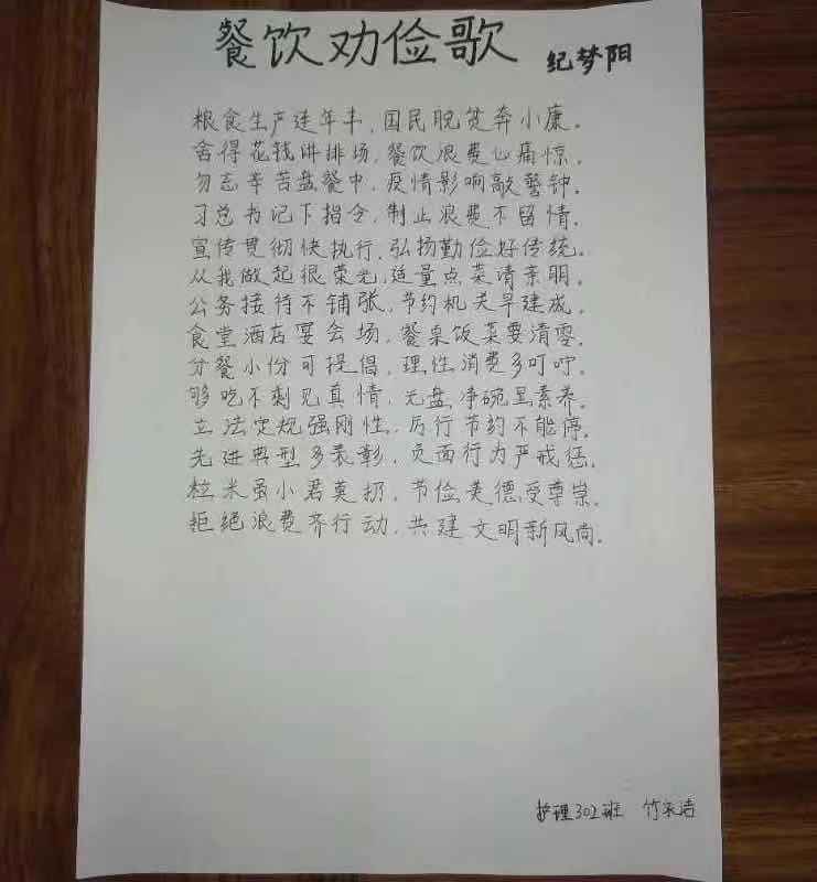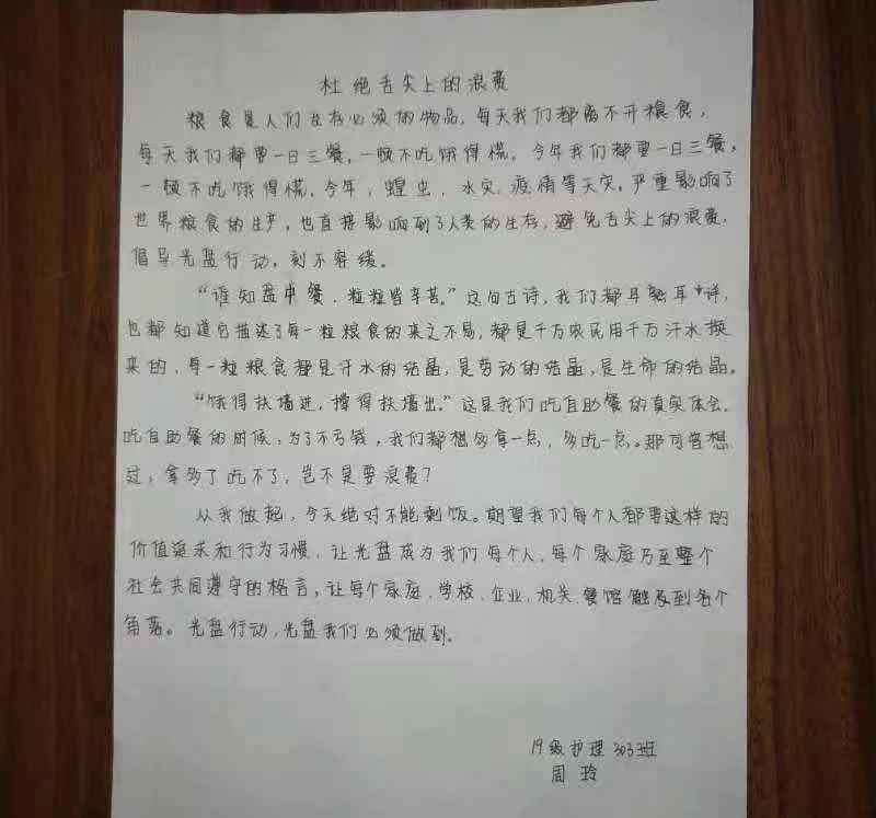 为了传承勤俭节约的优良品德,提倡厉行节约,反对铺张浪费的行为,更好地带动同学们珍惜粮食,真正做到餐厅不多点、食堂不多打、厨房不多做的光盘行动宗旨,培养青年大学生勤俭节约的意识,护理学院特举办“杜绝舌尖上的浪费倡导光盘行动”系列主题活动。