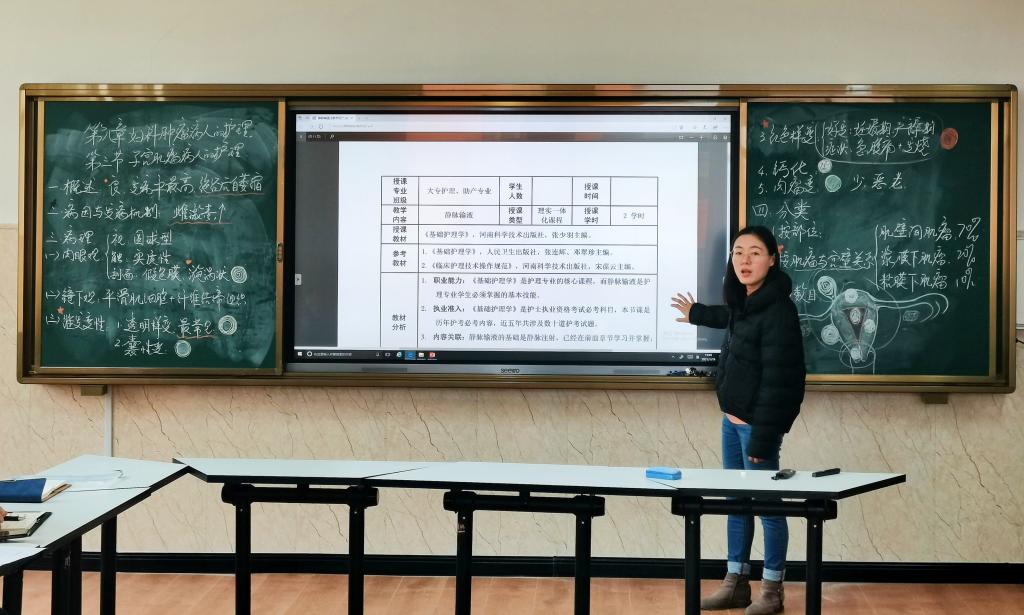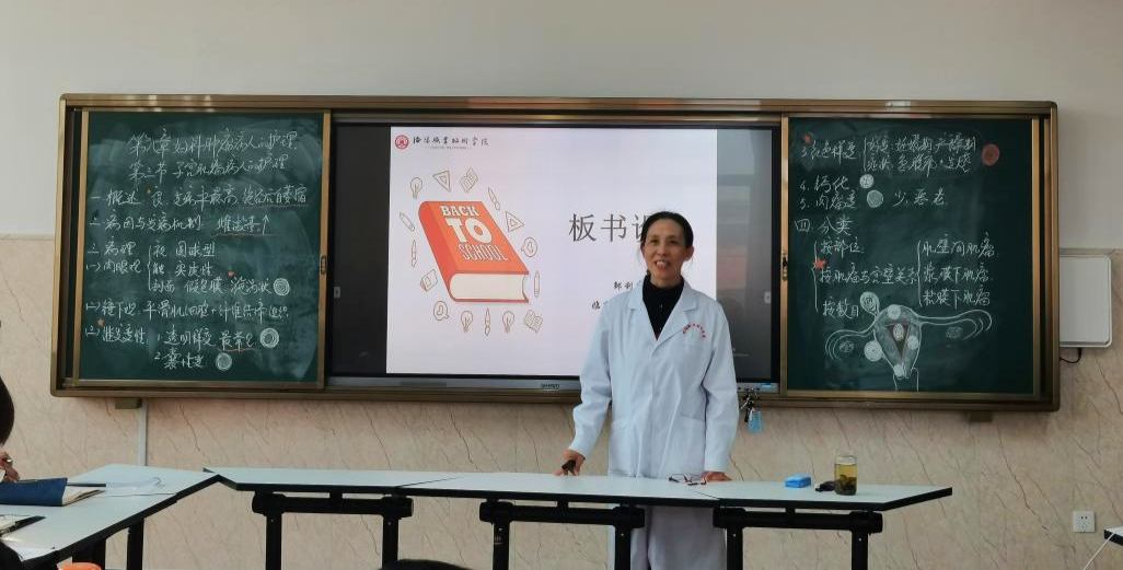洛阳市优秀教师邹利霞副教授讲授了板书的设计。她从板书的作用、特点以及板书设计的原则、技巧等多方面进行了详细讲解,并以《子宫肌瘤病人的护理》为例,具体讲授如何进行正确、美观的教学板书设计。