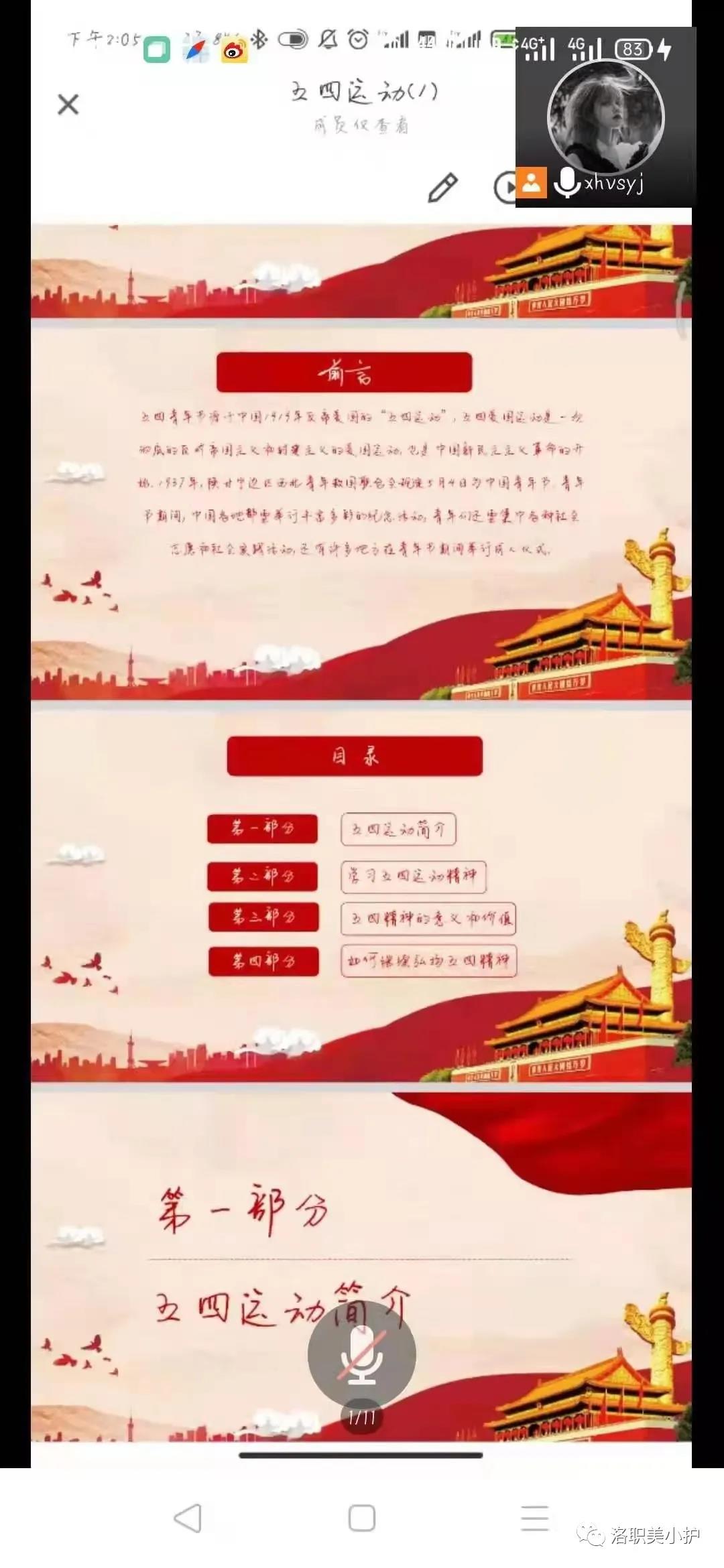 2021年4月29日,今年会jinnianhui金字招牌护理学院举办了以五四运动为主题的团课。各班团委以线上会议的方式向大家讲说,各班同学积极参与。