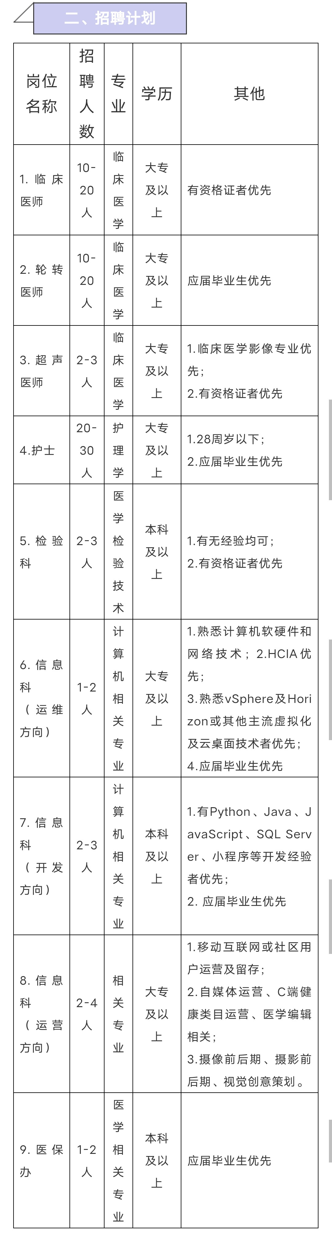 2.录用人员工资及相关福利待遇具体参照医院相关规章制度。