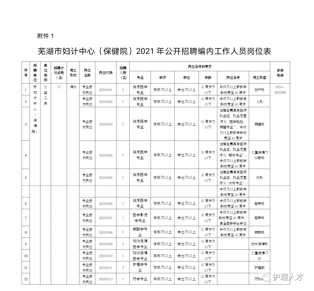 附件:1.芜湖市妇计中心(保健院)2021年公开招聘编内工作人员岗位表