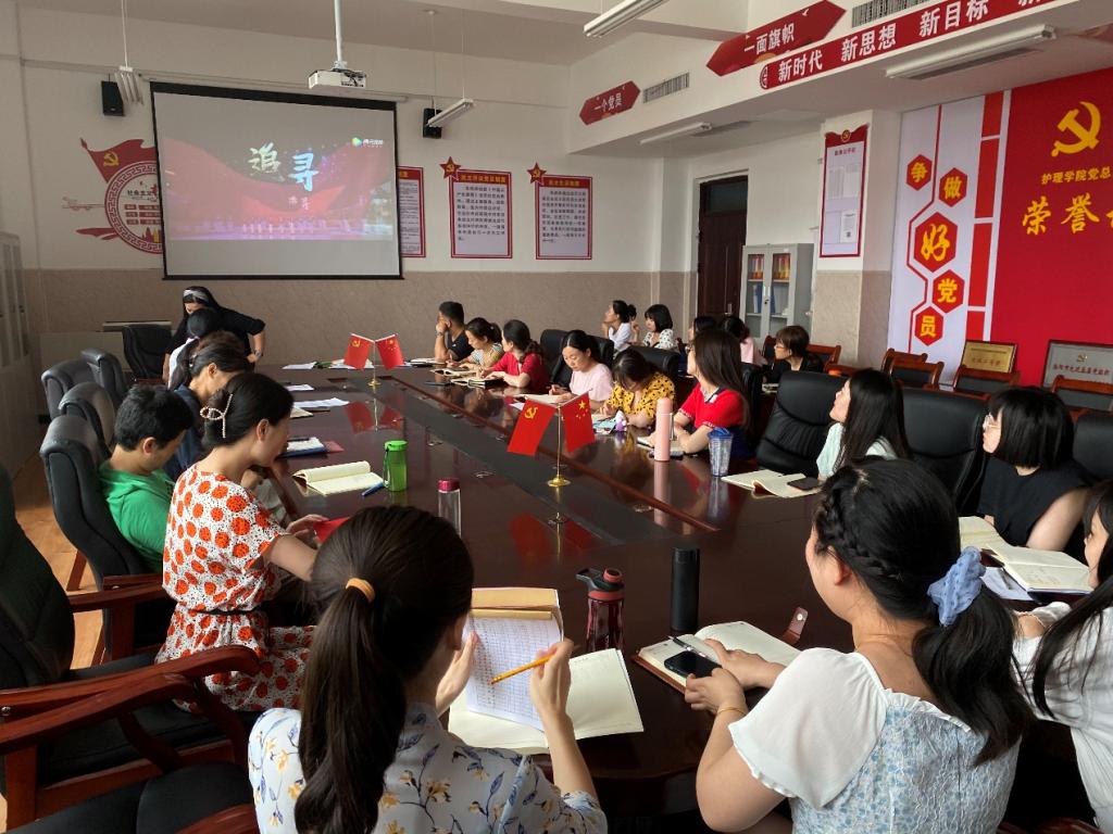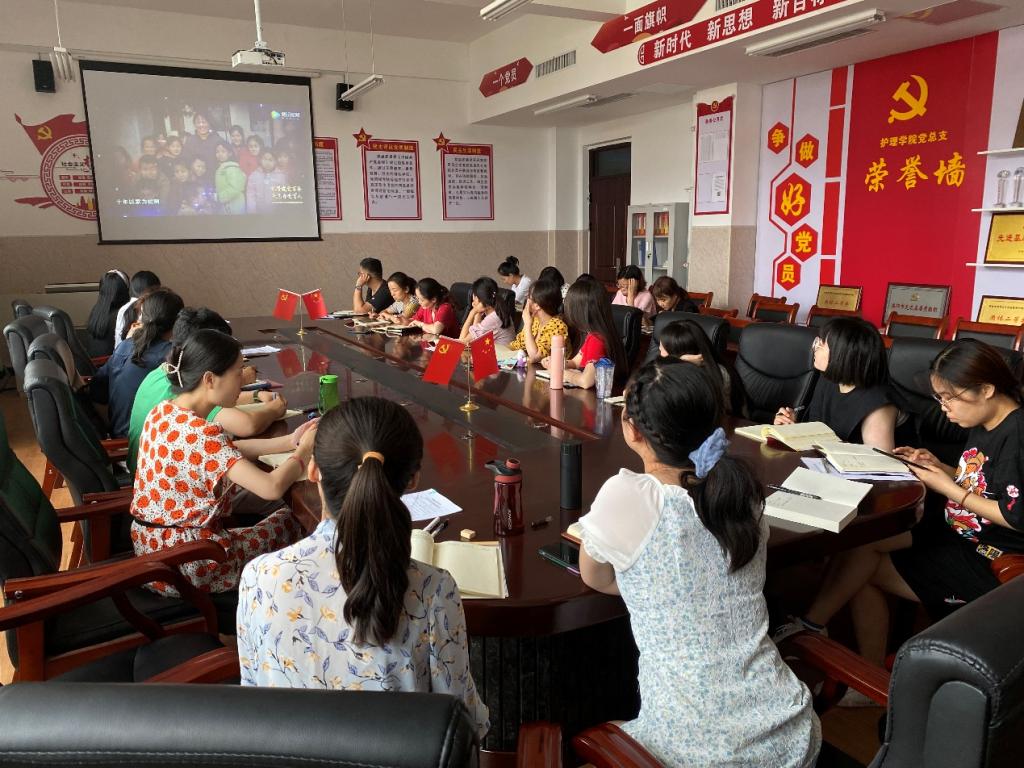 为讲好建党百年革命历史,讲好河南教育人的出彩故事,讲好共产党人“不忘初心,砥砺前行”奋斗故事,加强和改进新时代师德师风建设,以高质量的师德建设水平向建党百年献礼。根据省、市相关文件要求,7月5日中午,护理学院组织全院教职工观看河南省“礼赞建党百年,矢志为党育人”师德主题诗歌朗诵比赛。