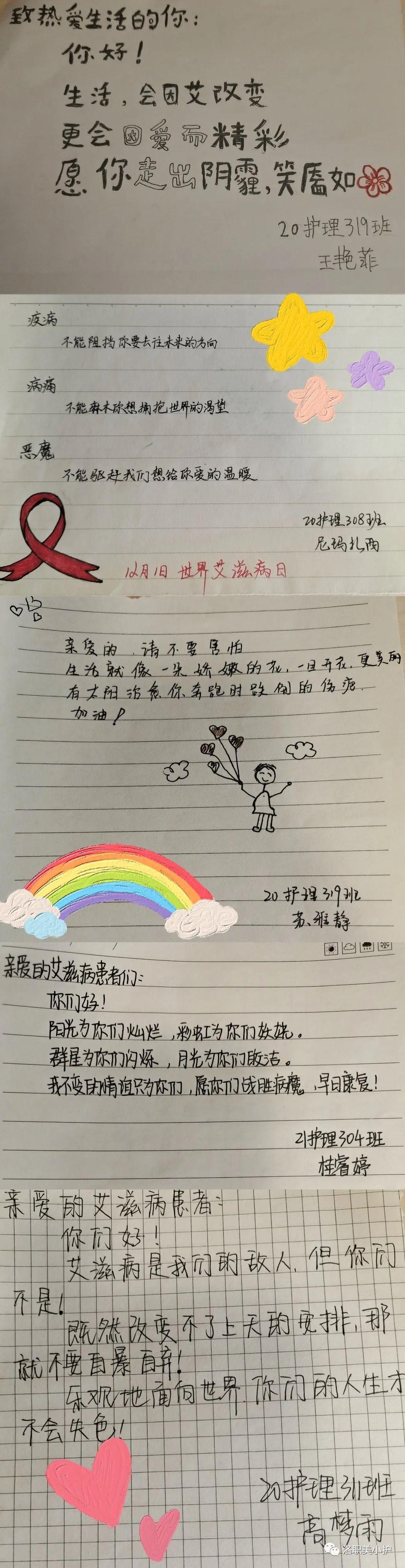艾滋病不仅是人类健康问题,而且涉及诸多社会因素。如何看待艾滋病和艾滋病患者已成为一大社会问题,关系到人类能否彻底根除艾滋病。尤其是对艾滋病问题的畏缩、偏见、蔑视等,无助于艾滋病防治工作的推进。今年,我国“世界艾滋病日”宣传活动主题为“生命至上 终结艾滋 健康平等”。秉着“有爱是温暖,无艾更健康”的信念,为营造的关爱艾滋病患者、传递爱、传递正能量的良好防艾氛围,护理学院开展了“致艾滋病患者的三行情书”主题活动。