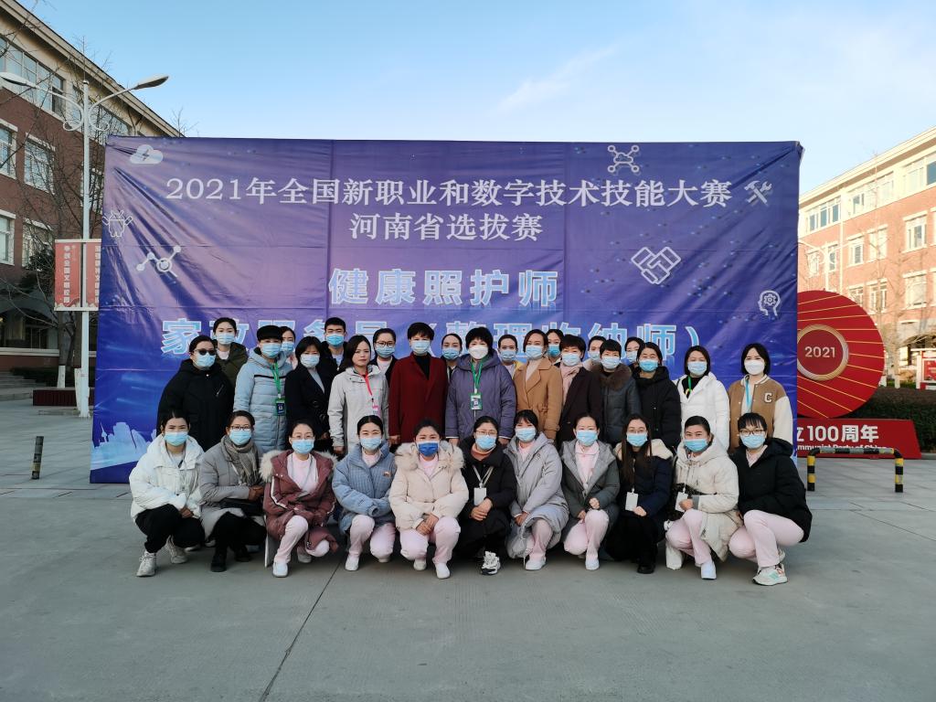 此次比赛,共有来自全省郑州、洛阳,开封,安阳,漯河、驻马店等城市的高等院校及健康照护机构20多名选手参赛,比赛聚焦“健康养老”主题,王璐老师经过四场比拼,取得全省第三名的好成绩,获得铜奖,按照相关规定报河南省人力资源和社会保障厅核准后,授予“河南省技术能手”称号,同时获得健康照护师二级职业技能等级证书。陈利颖老师作为裁判参加了此次执裁工作。