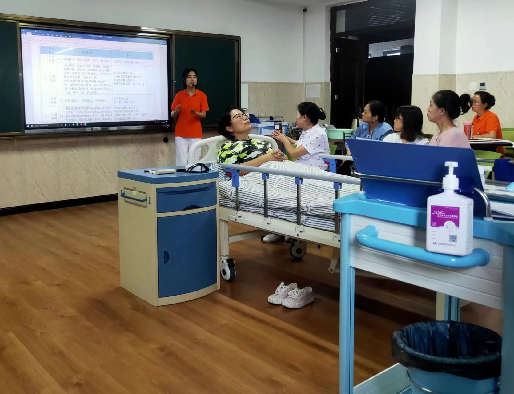 为充分发挥高校在服务社会中的支撑作用,护理学院教工党支部组织全体党群教师30余名认真听取技能培训标准的解读,并深入学习了血糖监测、超声雾化吸入、更换纸尿裤、为老年人应用滴耳剂等4项规范化、科学化的操作,为下一步开展各项高质量培训提供一定的参考与借鉴依据。