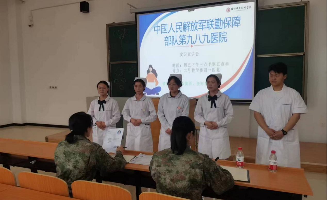 宣讲过后进入面试环节。面对准职业生涯的第一场面试,同学们身穿漂亮的护士服,精神抖擞,将自己精神面貌调整到最佳的状态,踏着坚定自信的步伐,落落大方地向老师介绍自己,实习双选会在医学和学校的共同努力下取得圆满成功。