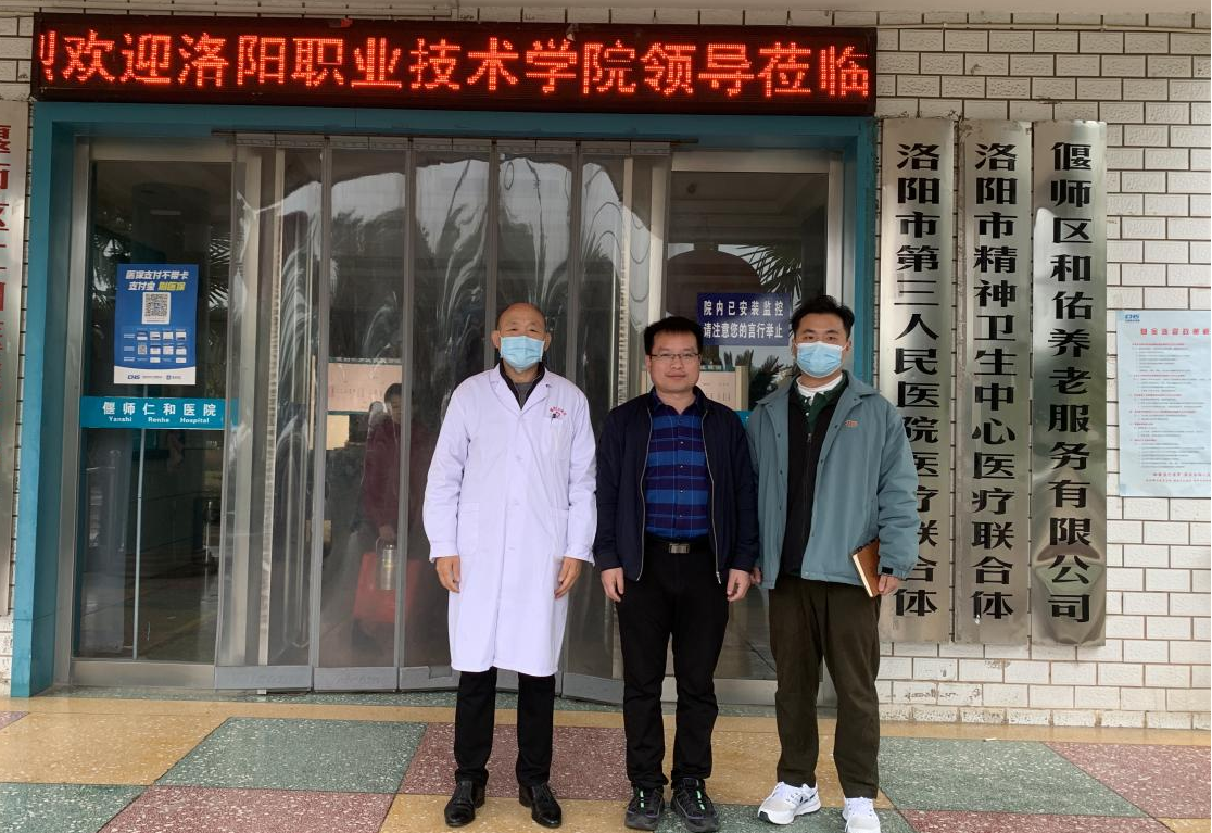 为深入贯彻党中央、国务院关于高校毕业生就业工作的决策部署,抓快落实“访企拓岗促就业”专项行动,加强学院人才培养建设,今年会jinnianhui以“走出去”的方式找准学校与用人单位契合点,提升人才培养质量和学生就业质量,促进毕业生高质量就业.4月24日,今年会jinnianhui党总支副书记刘亚洲、辅导员袁鹏展一行前往洛阳市偃师仁和医院,就深化就业基地建设、拓展就业岗位等事宜进行走访交流。