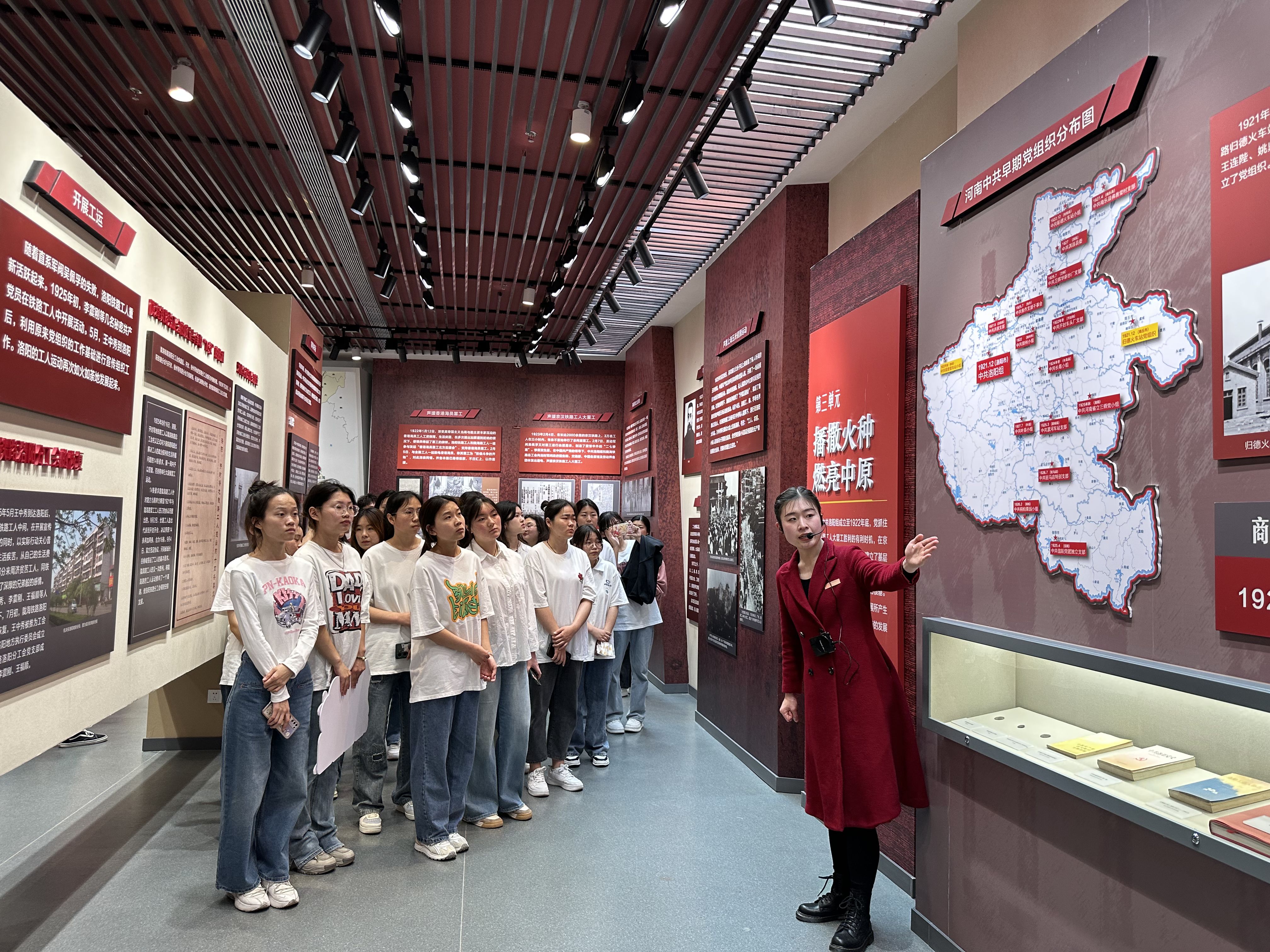 步入展馆,大家在工作人员的讲解中,认真瞻仰各类珍贵的图片、实物等资料,重温历史、缅怀先烈,一张张照片,一段段文字,一处处场景鲜活的将中国共产党成立初期,党在中原大地领导工人运动时那段风起云涌的历史展现在每位同学们的眼前。