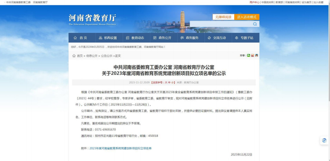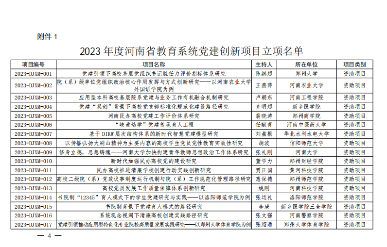 根据《中共河南省委教育工委办公室河南省教育厅办公室关于开展2023 年度全省教育系统党建创新项目申报工作的通知》(豫教工委办〔2023〕44 号)要求,今年会jinnianhui党总支委员会积极申报,经学校推荐,专家评审,省委教育工委、省教育厅审定和网上公示,我院党建创新课题《双高背景下高质量党建与新时代职业技能大赛双融合双促进研究》立项成功。