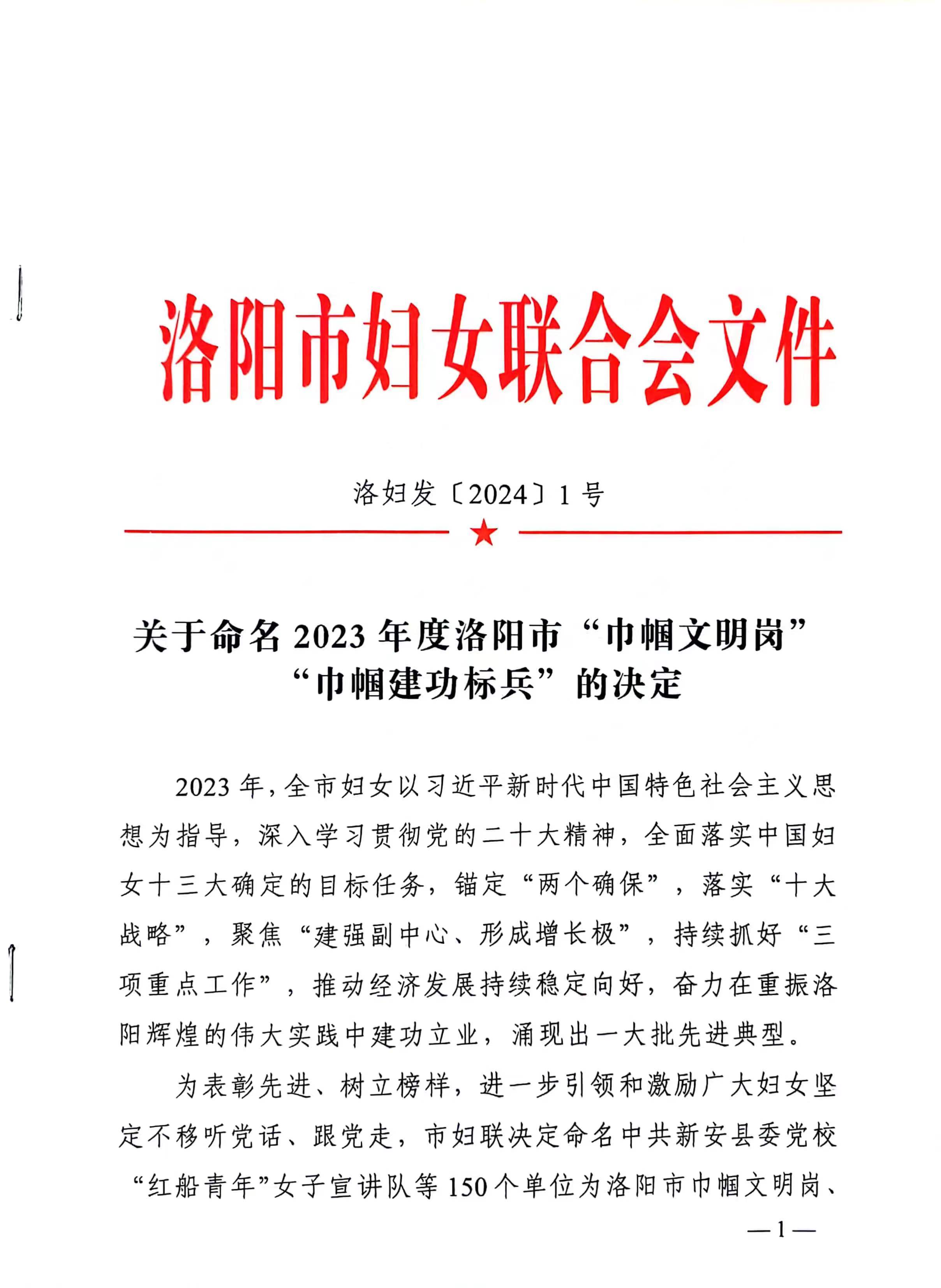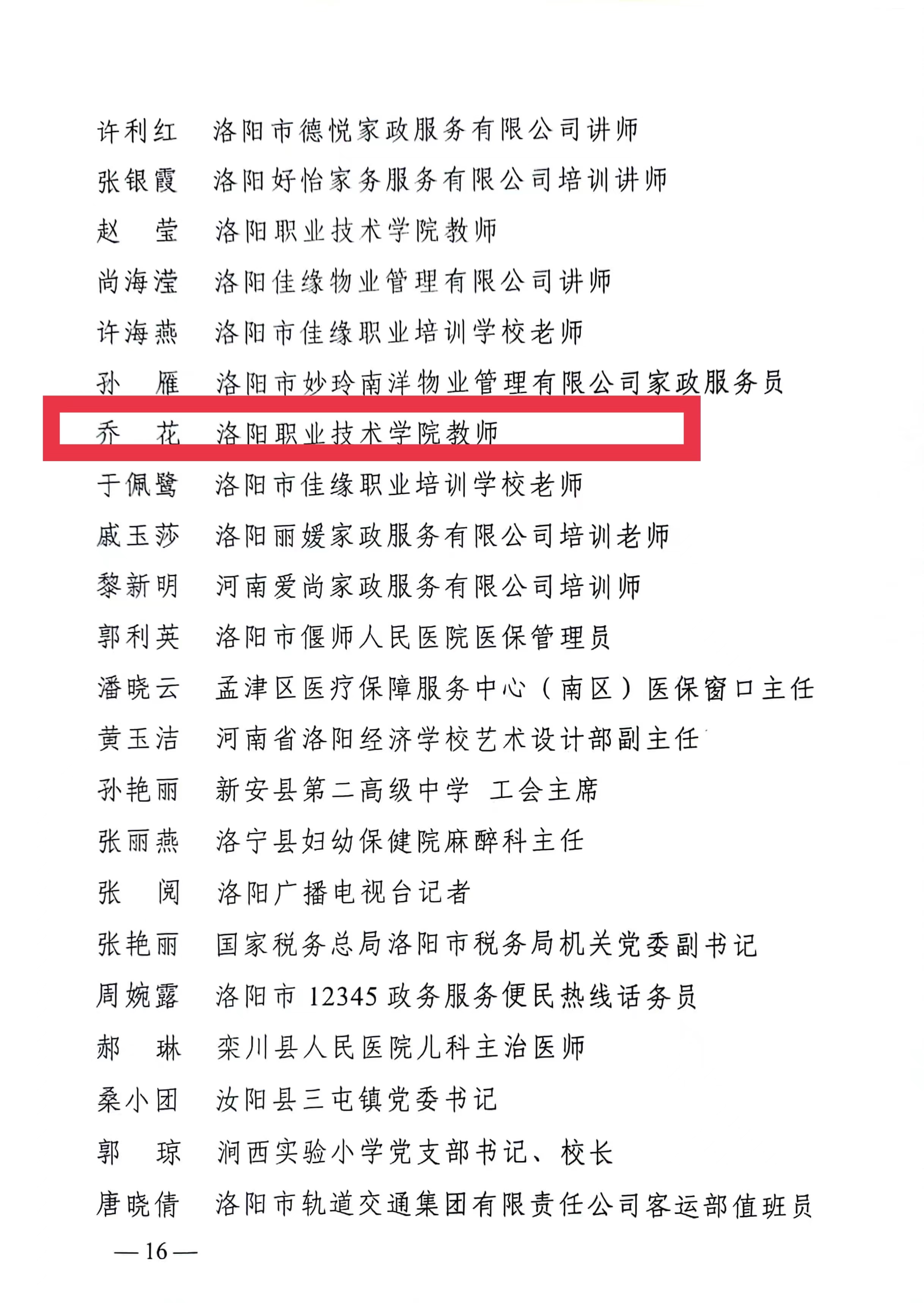 为表扬先进、树立榜样,进一步引领和激励广大妇女坚定不移听党话、跟党奋进新征程,以更加饱满的热情、更加昂扬的斗志,为社会发展贡献巾帼力量,洛阳市妇联对150个洛阳市巾帼文明岗和150位洛阳市巾帼建功标兵予以通报表扬。今年会jinnianhui金字招牌今年会jinnianhui乔花同志因在2023年洛阳市家政服务业职业技能大赛家庭照护员赛项荣获教师组一等奖而被评为洛阳市巾帼建功标兵。