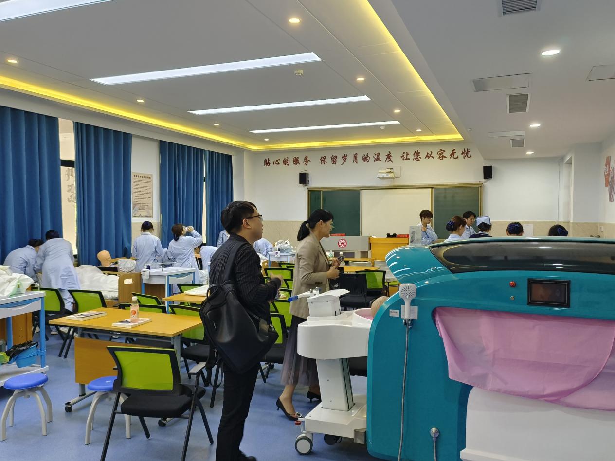 刘书莲首先介绍了河南省高水平专业群核心专业—智慧健康养老与服务专业,随后陪同李心亮参观智慧康养实训中心。