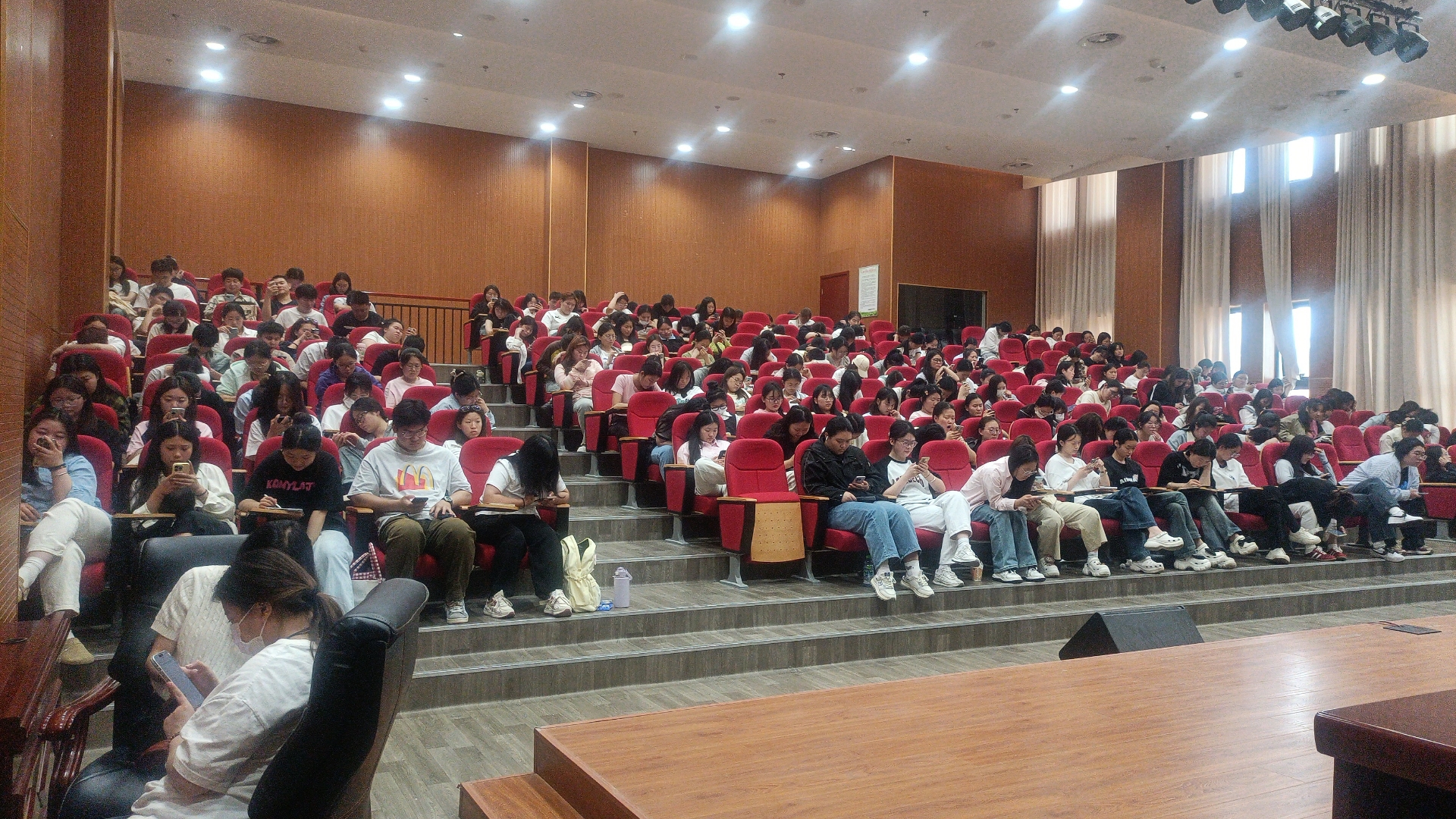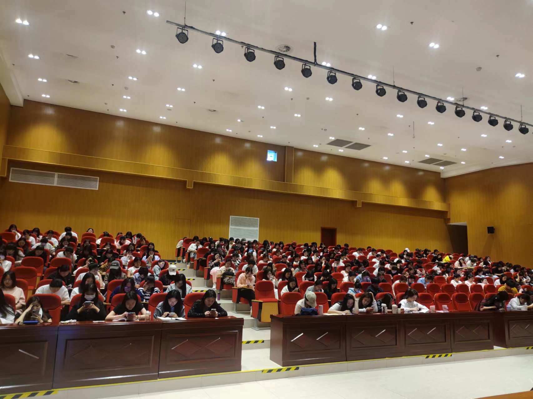 为帮助今年会学生顺利通过即将到来的护士执业资格证考试,2024年4月22日上午8点20分到中午12点,在大校党政办和心理教研室的协助下,今年会jinnianhui在大学生活动中心和心理剧场进行护资考试的线上第二轮模拟测试,450余名21级和90余名22级、23级学生,共计550余名护理专业学生参加了本次考试。
