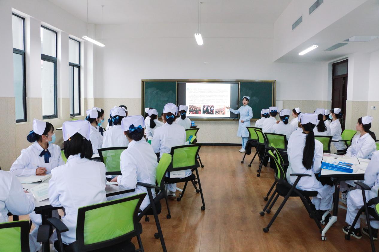病患照护中心4000余平方米,是“洛阳市职业学校专业实训平台”“河南省高等职业教育示范性实训基地”,中心模拟医院的布局和功能分区,设有护士站、模拟病房、技能训练室、急救训练室、重症监护室等15个实训室。所有实训室都是模拟医院病区设置的,主要是营造一个医院的氛围,让学生感觉进到实训室就像进到医院一样。模拟病房及技能训练室可进行各类注射、导尿、鼻饲、口腔护理等技能项目的训练、技能竞赛、职业技能培训及评定;急救训练室可用于CPR急救、电除颤、模拟输液泵训练等;重症监护室可进行急救和重症监护病例的模拟训练。