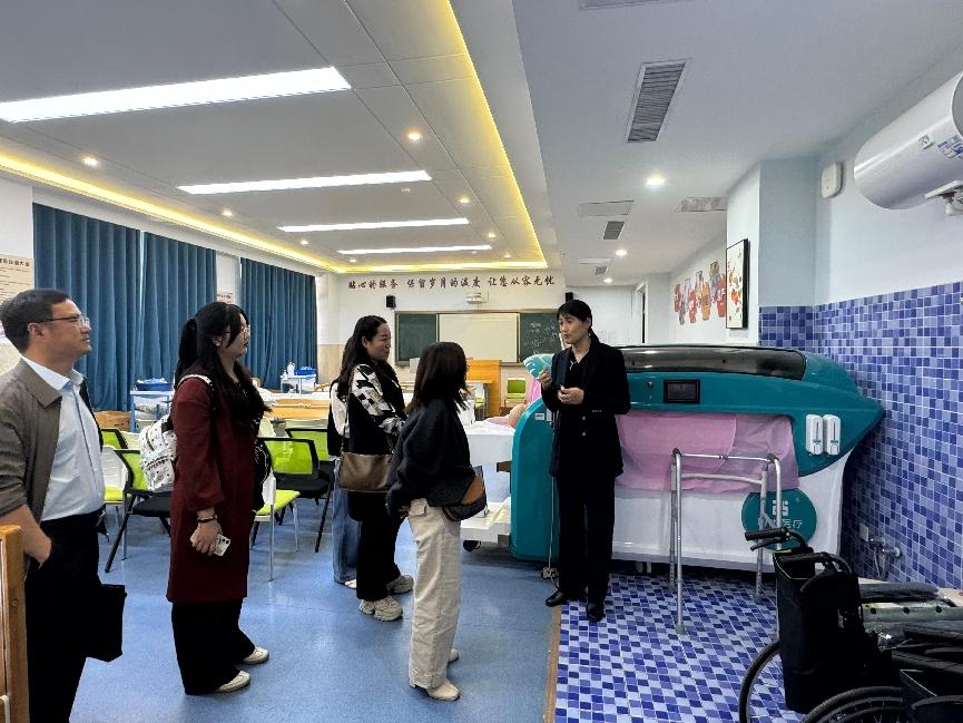 在考察中,双方进行了深入的交流。张彦芳详细介绍了今年会在智慧健康养老服务与管理专业方面的探索与实践,包括校企合作模式、产教融合路径、康养实训基地建设以及招生宣传、专业建设等方面的宝贵经验。她特别强调了学校在课程设置与人才培养方案上的创新,以及这些创新如何有效地提升了学生的专业技能与职业素养。