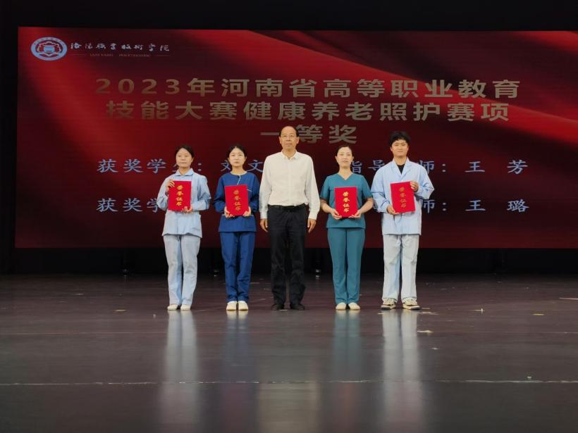 典礼现场,校领导为“2023年河南省高等职业教育技能大赛健康养老照护赛项一等奖”“2023年河南省高等职业院校技能大赛护理技能赛项二等奖、三等奖”“第十六届河南省“挑战杯”大学生课外学术科技作品竞赛二等奖、三等奖”“学校春季运动会获奖学生”“优秀学生干部”“优秀共青团干部”等获奖学生颁奖。