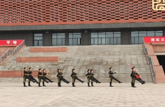 第一项:出旗。刘亚洲宣布升旗仪式正式开始,晨曦初照,国旗护卫队身着礼服,肩扛钢枪,步伐整齐划一,铿锵有力。他们护卫着鲜艳的五星红旗,庄严走向旗杆。