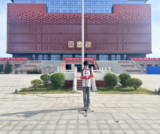 第三项:24级学生代表李光灿发言。首先,他围绕响应号召,勇担时代使命、知行合一,锤炼报国本领、扎根基层,践行报国初心三个方面展开讨论,向同学们深刻阐述了“服务社会,技能报国”,这八个字不仅承载着党和国家的期望,凝聚着人民的托付,也照亮了我们前行的道路。