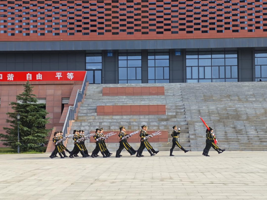 第一项:出旗。清晨的阳光洒在操场上,国旗护卫队迈着整齐矫健的步伐走向升旗台。他们个个英姿飒爽,眼神坚定,展现出对国家的忠诚和敬意。