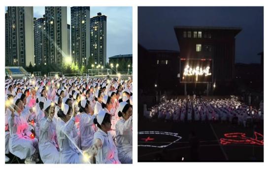 仪式尾声,全场师生点亮手机闪光灯,共唱《夜空中最亮的星》。点点微光随旋律摇曳,汇成璀璨星海,映照着学子们坚毅的面庞。歌声中,“提灯女神”精神与当代青年的热望共振,照亮护理人永不褪色的信仰征程。