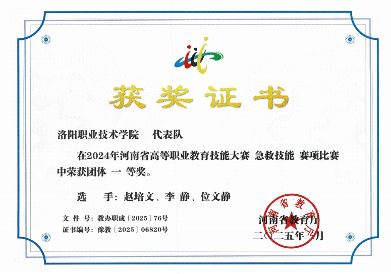 4 | 2024年河南省高等职业教育技能大赛急救技能赛项学生组 | 一等奖1项 三等奖1项 |
