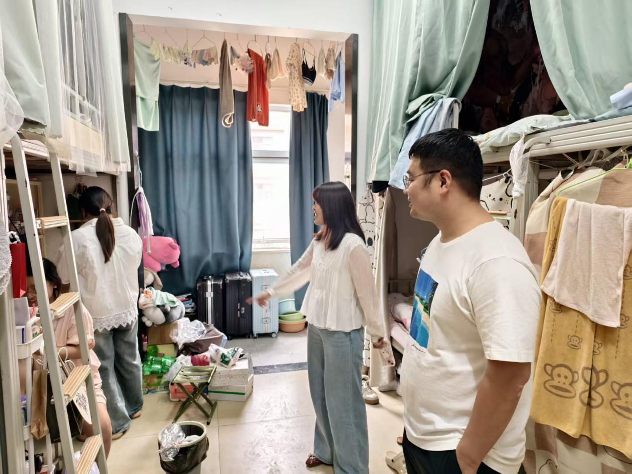 "插座要远离床铺""阳台杂物要及时清理",辅导员们化身"安全侦探",从电源线路到门窗锁具,从卫生死角到违禁电器,手持检查表逐项"过筛"。在检查过程中,老师们还不时掏出手机拍摄优秀寝室案例,"这个寝室的书桌收纳太整齐了,大家快学起来!"