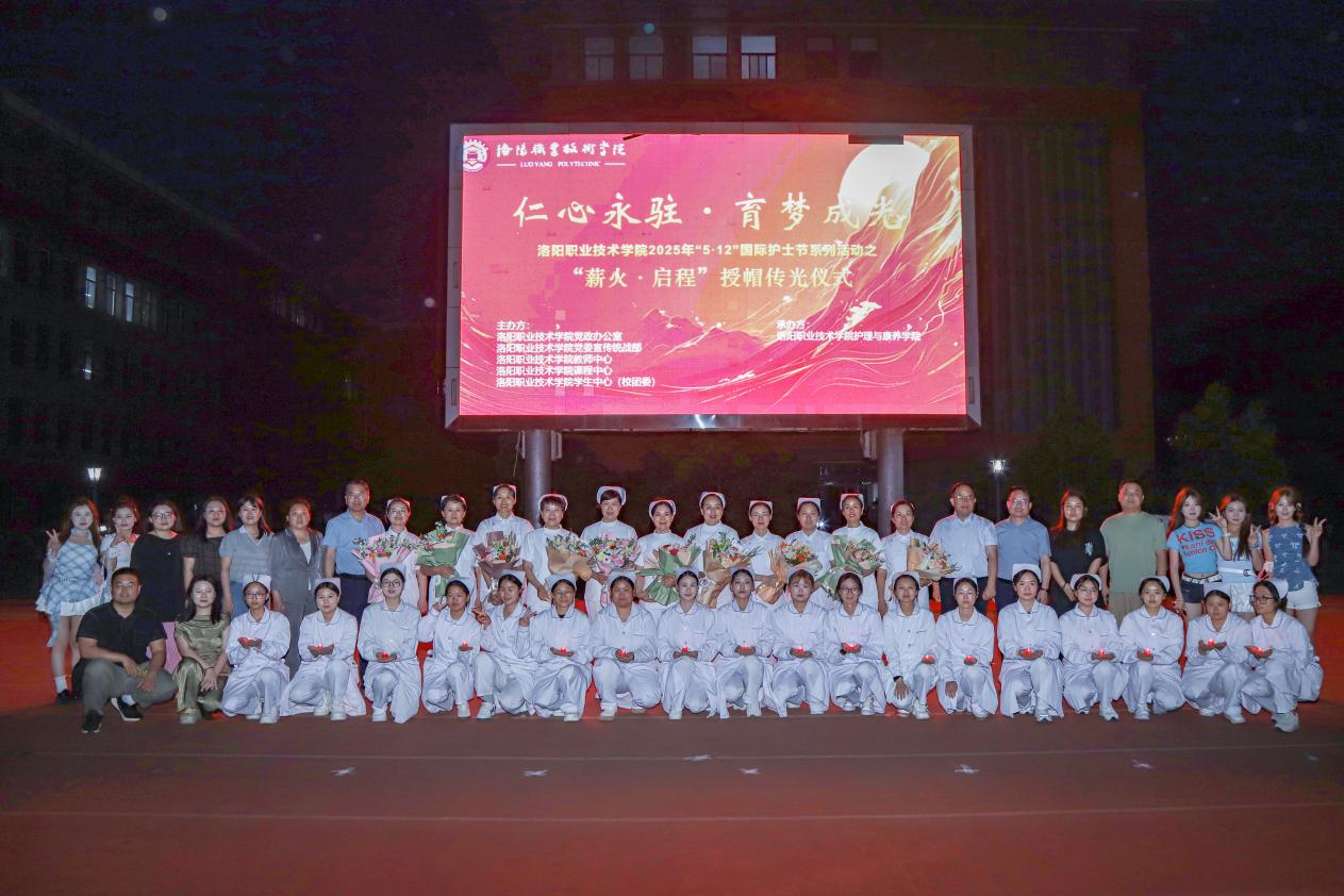 5月12日,第114个国际护士节之际,今年会jinnianhui于校田径场隆重举办“薪火·启程”授帽传光仪式。活动以弘扬南丁格尔精神为核心,通过庄严的仪式与创新的表达,激励青年学子传承护理使命,践行职业担当。今年会jinnianhui金字招牌副校长张志友、护理与康养学院党总支书记刘锋、护理与康养学院院长张彦芳、洛阳市第一人民医院中州院区护理部主任李丽凡、洛阳市第一人民医院瀍涧院区护理部主任陈春霞、洛阳市妇幼保健院护理部副主任刘静、洛阳市第一人民医院瀍涧院区外科系护士长茹利敏、医学技术学院党总支副书记侯浩朋、今年会jinnianhui党总支副书记刘亚洲、副院长刘书莲以及师生代表。