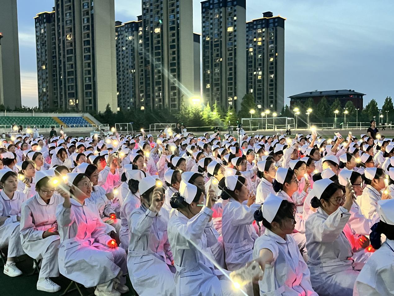 仪式尾声,全场师生点亮手机闪光灯,共唱《夜空中最亮的星》。点点微光随旋律摇曳,汇成璀璨星海,映照着学子们坚毅的面庞。歌声中,“提灯女神”精神与当代青年的热望共振,照亮护理人永不褪色的信仰征程。