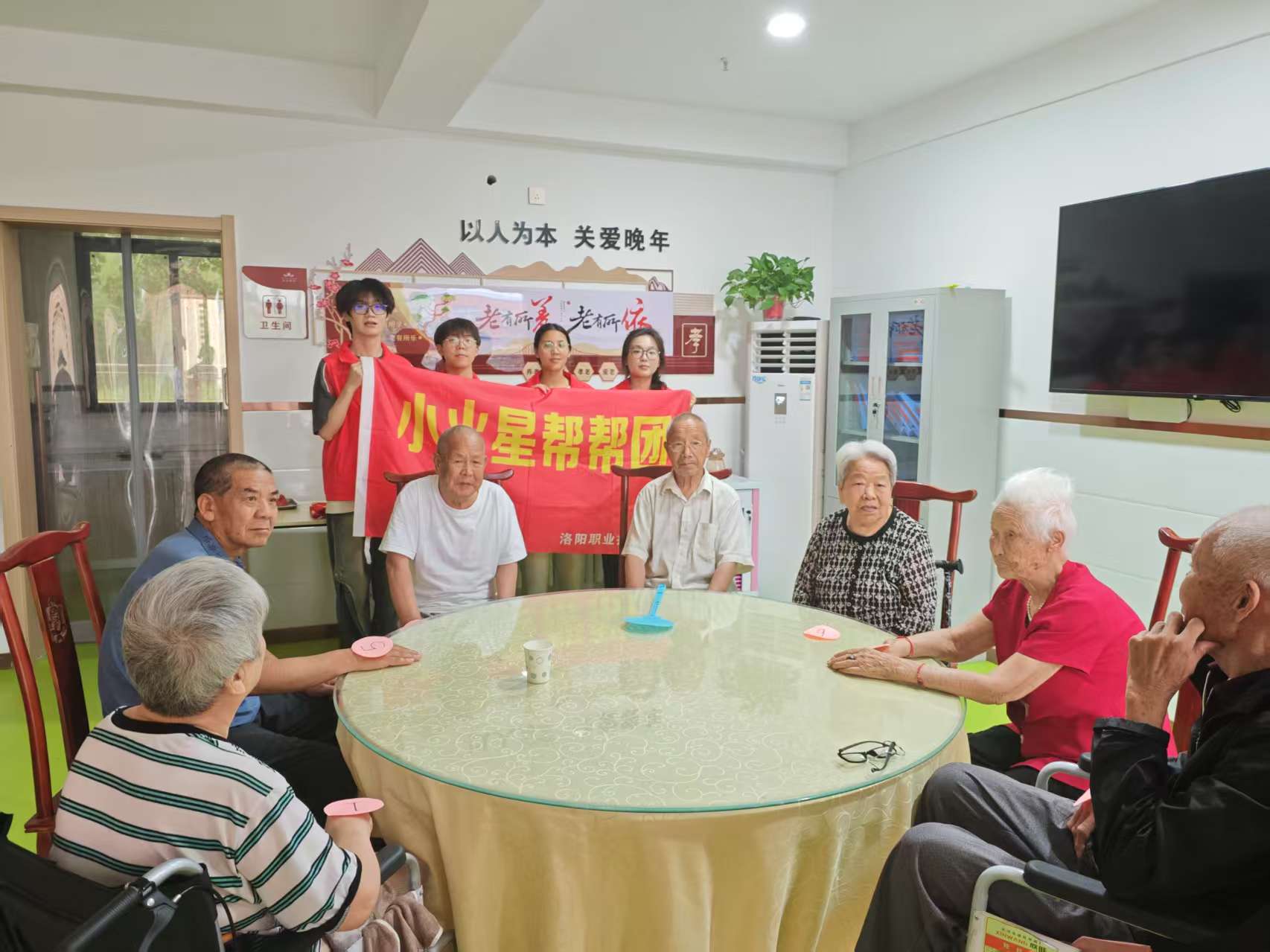 党员教师们充分发挥专业特长,为老人们进行健康义诊,量血压、测血糖,耐心解答健康疑问并给予养生建议。与此同时,现场氛围温馨热烈。一位老人兴致勃勃地唱起《穆桂英挂帅》选段,韵味十足。小火星志愿服务队的学生们也热情参与,与老人们一同唱响经典红歌《东方红》《社会主义好》,歌声激昂,旋律在养老院里回荡。党员教师和学生代表们还陪老人闲话家常,倾听他们的光荣故事,帮忙整理物品,让养老院处处充满温情。
