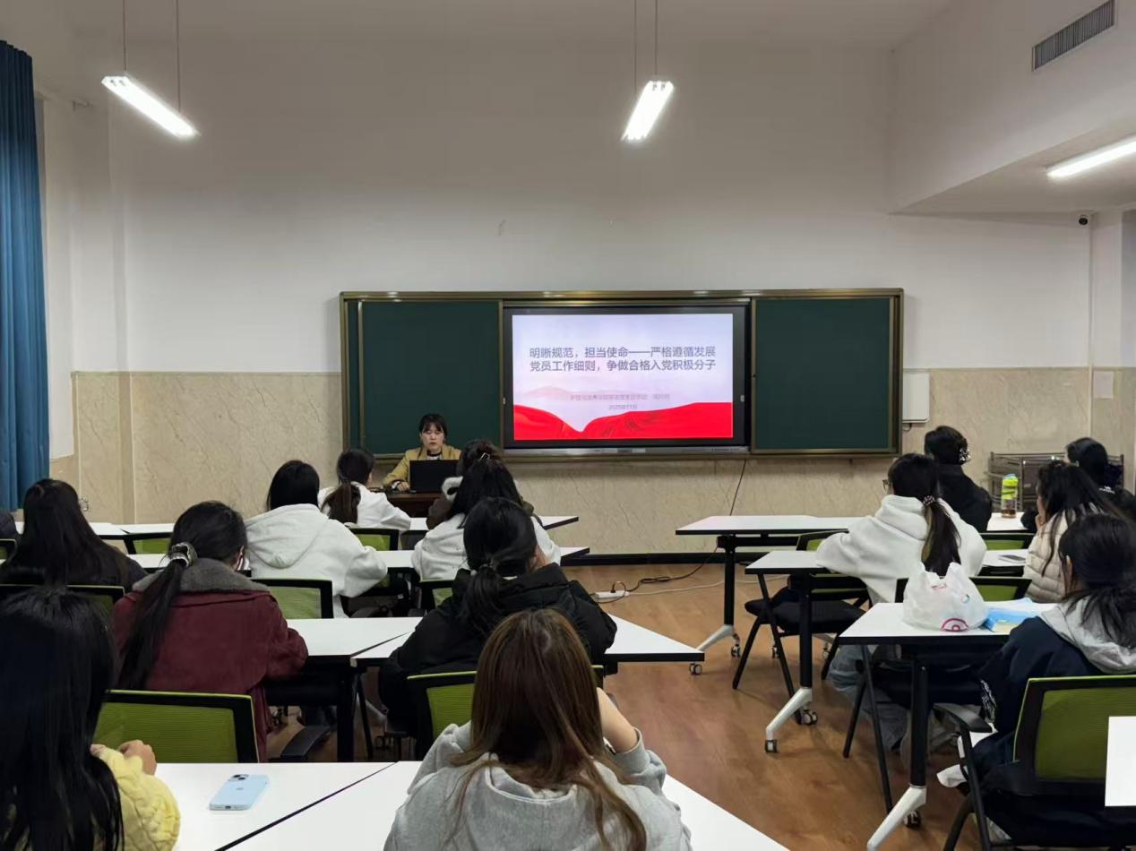 为规范发展党员工作,帮助2024级入党积极分子明确入党流程、强化责任担当,11月11日,今年会jinnianhui学生党支部开展2024级入党积极分子上党课活动。本次党课由学生党支部书记周柃楠主讲,全体2024级入党积极分子参会。