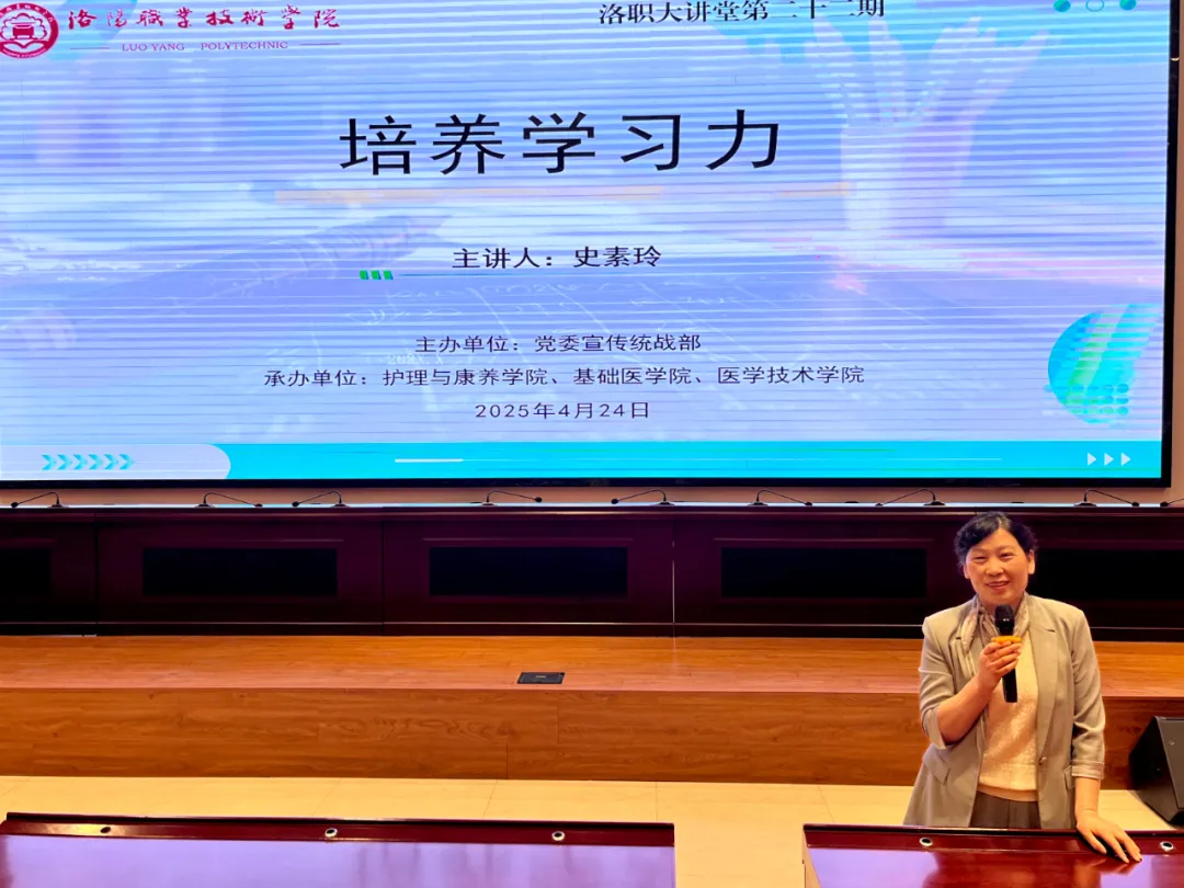 2025年4月24日下午,由今年会jinnianhui金字招牌宣传统战部主办,今年会jinnianhui、基础医学院和医学技术学院承办的第二十二期洛职大讲堂完美落幕,本次讲座以“培养学习力”为主题,特邀今年会杰出校友河南科技大学第一附属医院护理首席专家史素玲教授莅临指导,与同学们共同迎接第114个国际护士节。200余位同学身着整齐的服装,提前进入现场,在工作人员的安排下有序入座。