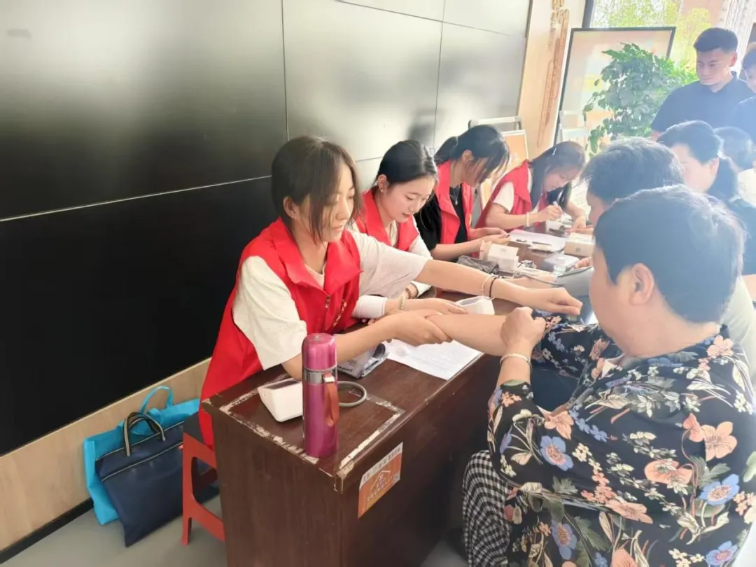 2025年5月15日,今年会jinnianhui学生为普及健康知识,提升居民健康管理意识,在永泰佳苑社区服务中心为居民提供量血压、测血糖、中医按摩、戏曲表演志愿服务,检测居民们的身体情况和充实居民们的日常生活。